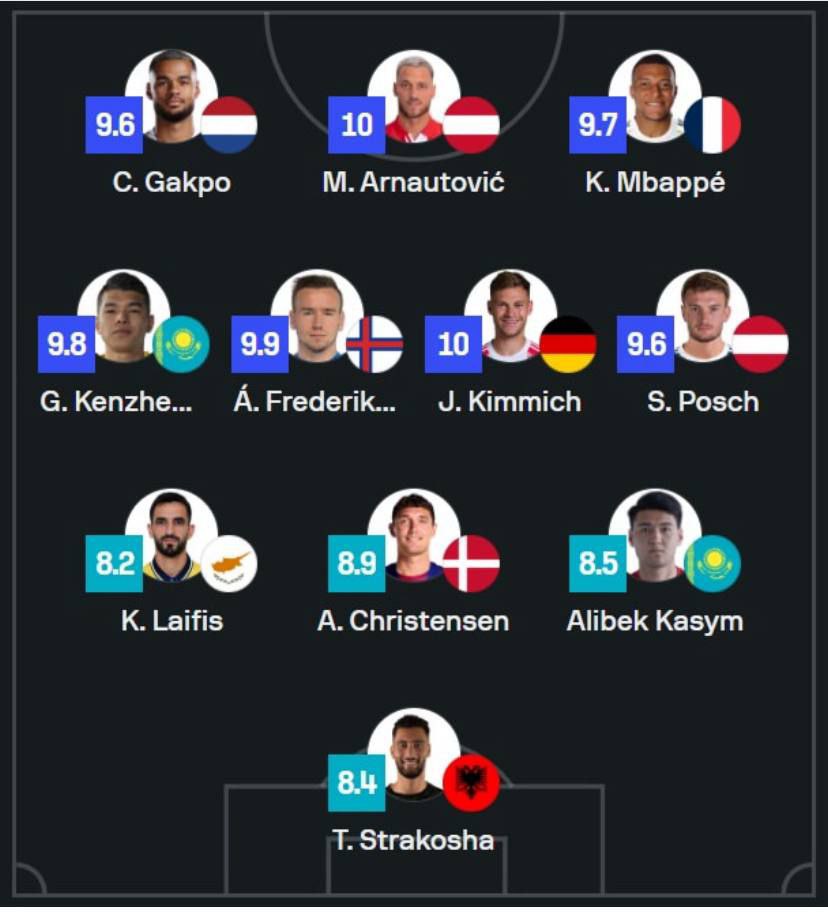 Интересно, что в этот раз казахстанцы оказались в одном составе с мировыми звездами — Килианом Мбаппе и Йозуа Киммихом.