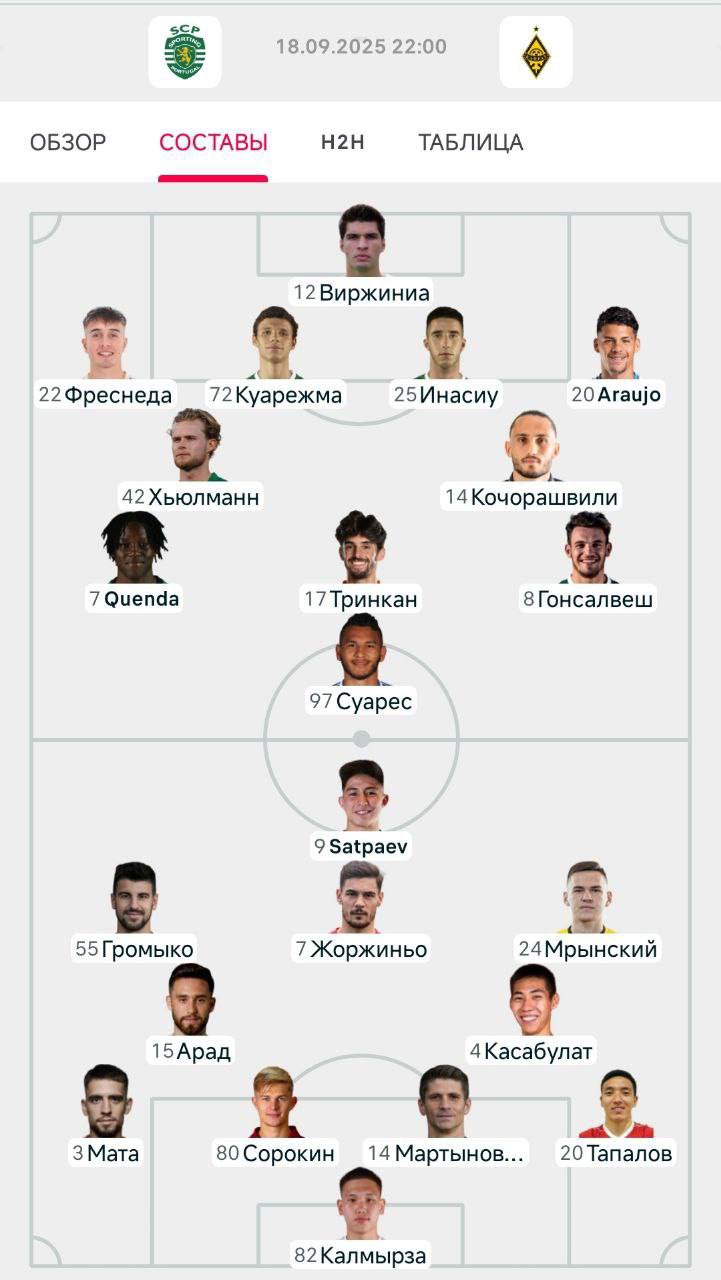 Алматинский «Кайрат» представил стартовый состав на дебютный матч группового этапа Лиги чемпионов. Команда Рафаэля Уразбахтина сыграет против лиссабонского «Спортинга».