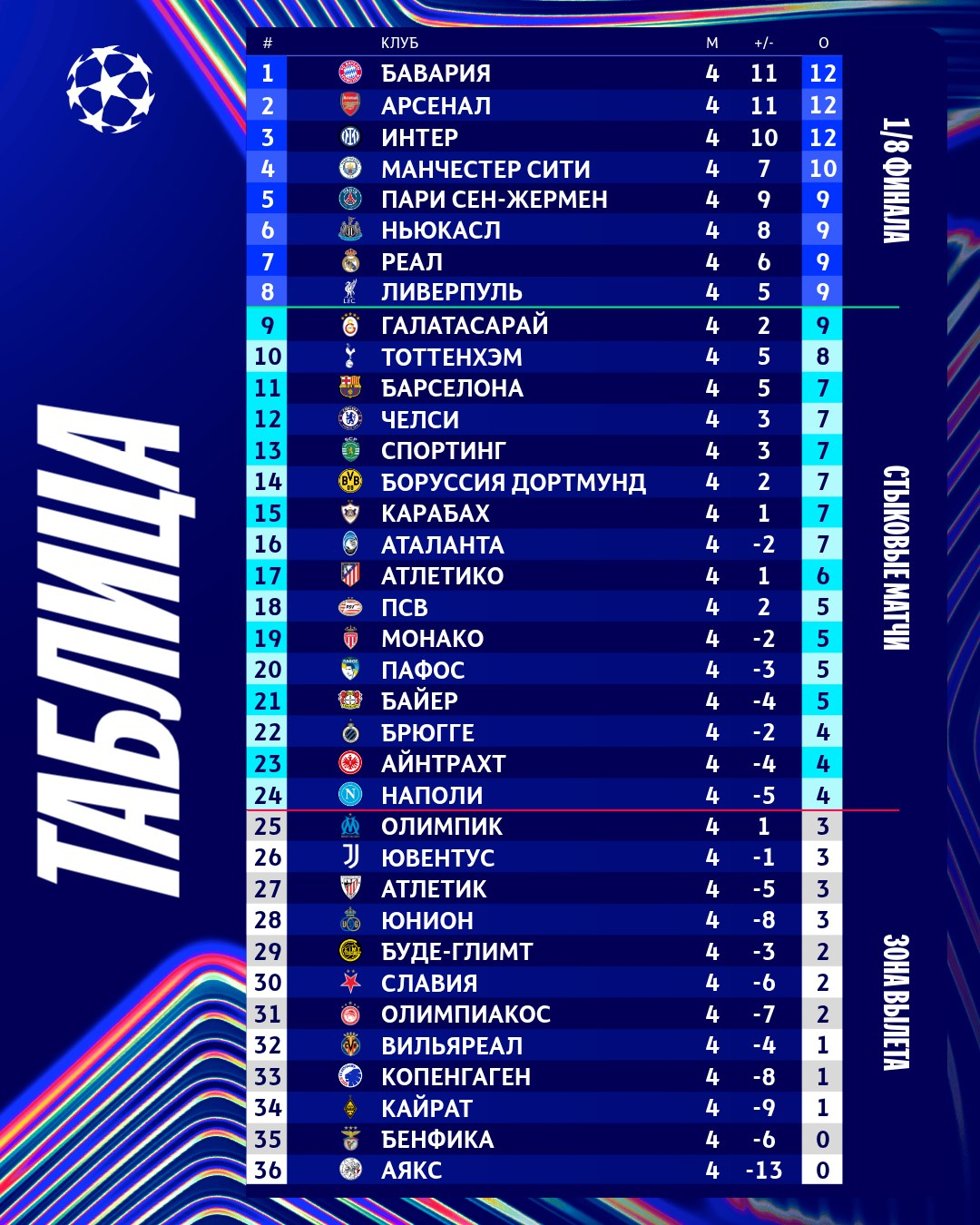 Полный список пар стыкового раунда выглядит следующим образом: «Боруссия» Дортмунд встретится с «Аталантой», «Брюгге» сыграет против «Атлетико», «Олимпиакос» померяется силами с «Байером», «Галатасарай» сойдется с «Ювентусом», «Монако» выйдет на поле против ПСЖ, «Карабах» сыграет с «Ньюкаслом», «Бенфика» встретится с «Реалом», а «Буде-Глимт» поборется с «Интером».