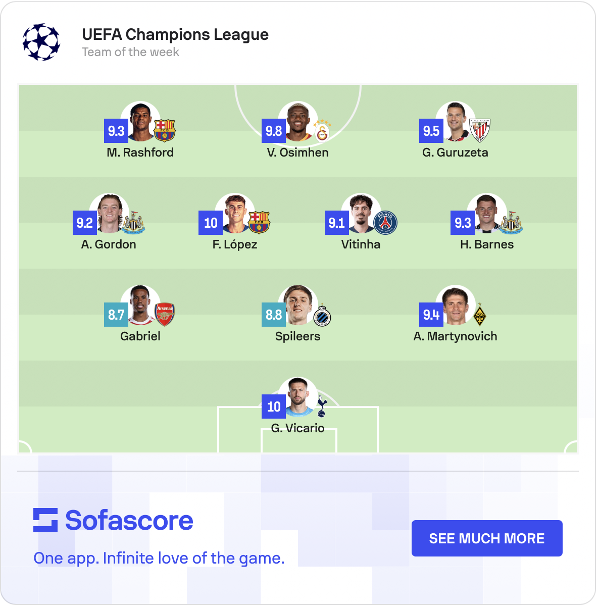 Александр Мартынович получил оценку 9.4 от SofaScore и стал одним из лучших игроков третьего тура общего этапа турнира.