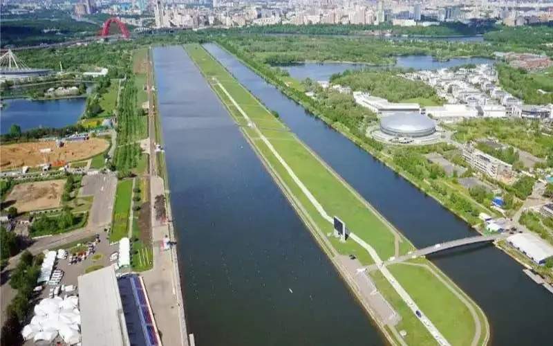 Комплекс площадью около 100 гектаров включает водное зеркало на 48 гектаров, протяжённость канала составляет 2 222 метра при глубине до 4 метров. На территории расположены трибуны, эллинги, судейские посты, прогулочные зоны и благоустроенная набережная. Система фильтрации и аэрации поддерживает чистоту воды и комфортные условия для тренировок и соревнований.